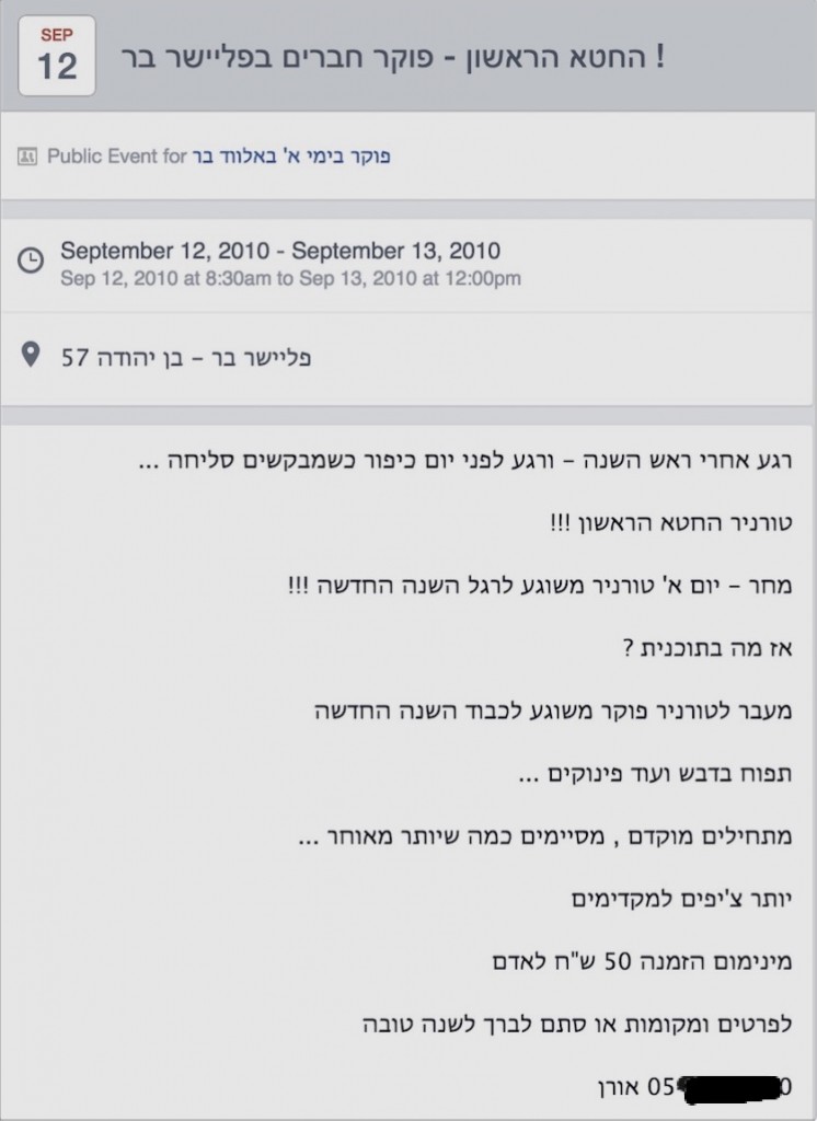 שמעתי שהוא קיים את טורניר הפוקר הלא חוקי בפסח ומכר ואף הציג שם חמץ. נראה לי שזה מכשיר את הפעילות, בעיקר כשכולם מודים שהחוק לא ממש הגיוני.